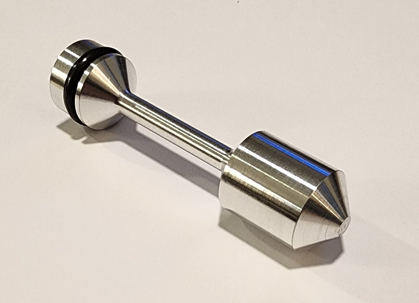 The oil galley oil diverter Barbell in your Gen III & IV LS based engine is something that is overlooked. And yet it serves a very important mission of directing oil to the oil filter. If oil leaks past the Barbell, it will go unfiltered directly to the Cam Bearing, Lifters, Crank and Rod Bearings. The factory Barbell is approximately .020” smaller than the oil gallery, so particles as big as 250 microns can leak past the factory Barbell. Your oil filter will filter out approximately 25 Microns depending on the brand of filter. As the original inventor of the Aluminum Precision fit Barbell, we are always striving to make improvements. Our latest 4.0 update has, as with our previous versions, we use 7075 Aluminum unlike our competitors that are using 6061. Our 4.0 Barbell has a wider sealing area on the front of it, eliminating the need for an unreliable Oring. During our prototyping we tried an Oring on the front and when installing it, the Oring was getting sliced and chipped on the sharp internal oil ports and left Oring remnants that could have gotten in the lifters and bearings.